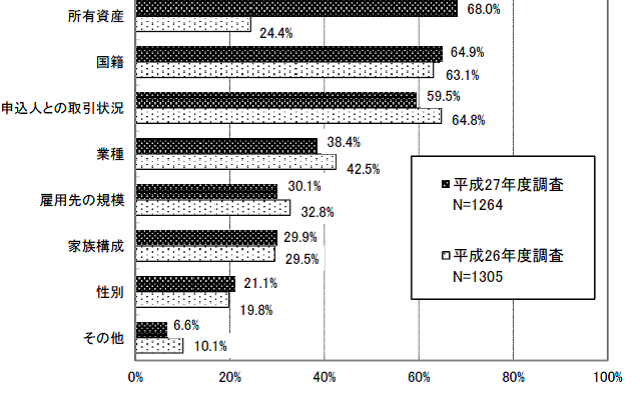 金融機関が審査するポイントはなかなかわからないのですが、国土交通省が定期的にアンケート調査をしていますから、こちらで審査のポイントがわかります。
