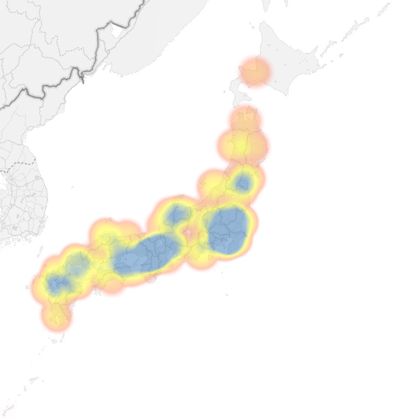 日本地図に水曜日の場合は青色、日曜日は赤、